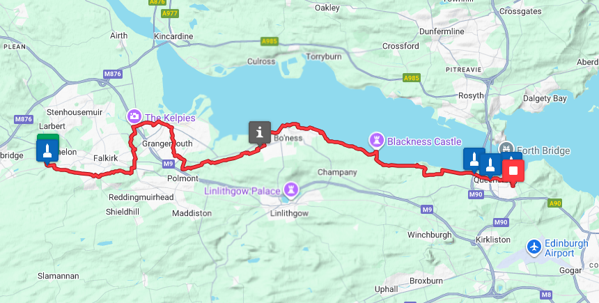 From the Falkirk Wheel to Dalmeny train station, this remarkable marathon walk offers a sublime blend of Scottish countryside and iconic sights, such as The Kelpies and Blackness Castle.